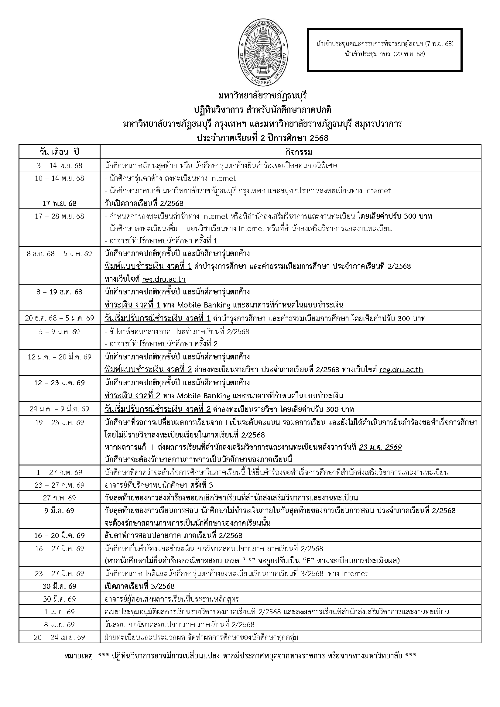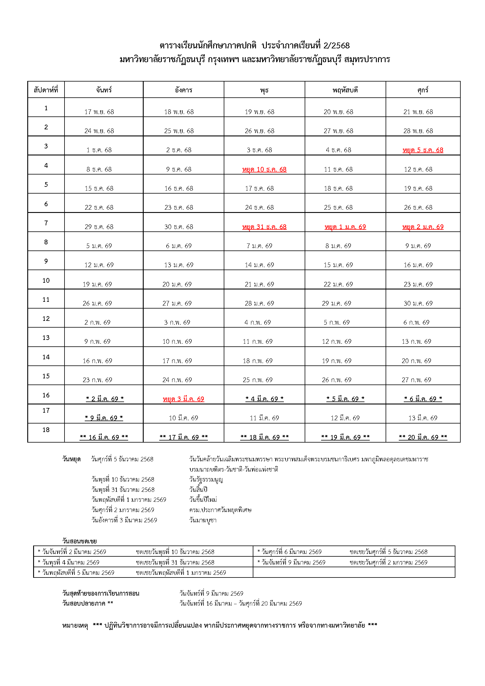 ปฏิทินวิชาการ ภาคปกติ CP ALL